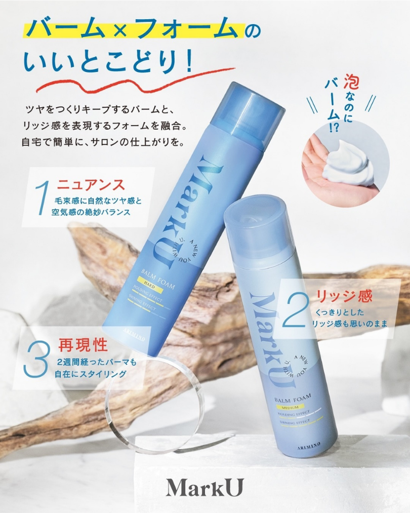 アリミノのメンズ向け新ブランド「Mark U(マークユー)」から、革新的なスタイリング剤「バームフォーム」が登場しました!